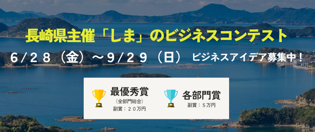 長崎県主催の離島地域での地域活性化や地域課題解決につながるビジネスアイデアをお持ちの方を対象としたコンテストです。しまでビジネスをお考えの方から、学生の方まで、多くの方にご参加いただけます。