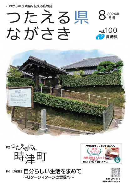 プレゼントの応募はこちらをクリック デジタルブック(電子書籍版)はこちらをクリック(外部リンク)新しいウィンドウで開きます 全ページ つたえる県ながさき8月号(16ページ)[PDFファイル/6MB] 表紙 つたえる県ながさき8月号表紙[PDFファイル/716KB] つたえるけん 時津町 つたえる県ながさき8月号つたえるけん(2ページから3ページ)[PDFファイル/2MB] 特集 自分らしい生活を求めて ~Uターン・Iターンの実現へ~ つたえる県ながさき8月号特集(4ページから7ページ)[PDFファイル/3MB] つたエールけん 日本紙器株式会社 つたえる県ながさき8月号つたエールけん(8ページ)[PDFファイル/897KB] すすめるけん 「新しい長崎県」を一緒につくりませんか つたえる県ながさき8月号すすめるけん(9ページ)[PDFファイル/794KB] 特設ページ 日本スポーツマスターズ2024長崎大会 つたえる県ながさき8月号特設ページ(10ページ)[PDFファイル/316KB] ながさきレシピ、すくすくいきいき 巨峰とブルーベリーのスムージー 8月10日は「健康ハートの日」です つたえる県ながさき8月号ながさきレシピ、すくすくいきいき(11ページ)[PDFファイル/709KB] 情報ひろば つたえる県ながさき8月号情報ひろば(12ページから14ページ)[PDFファイル/668KB] 読者プレゼントなど サマーボランティア・キャンペーン2024 つたえる県ながさき8月号読者プレゼントなど(15ページ)[PDFファイル/1MB] 裏表紙 地域の特色ある文化・芸術【時津町】 つたえる県ながさき8月号裏表紙[PDFファイル/917KB]