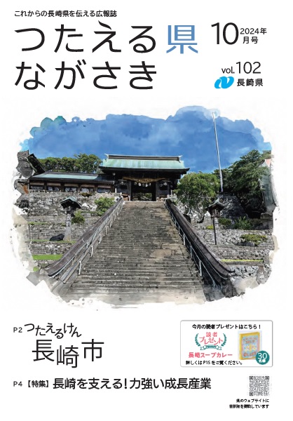 「つたえる県ながさき」第102号(令和6年10月号) プレゼントの応募はこちらをクリック デジタルブック(電子書籍版)はこちらをクリック(外部リンク)新しいウィンドウで開きます 全ページ つたえる県ながさき10月号(16ページ)[PDFファイル/6MB] 表紙 つたえる県ながさき10月号表紙[PDFファイル/764KB] つたえるけん 長崎市 つたえる県ながさき10月号つたえるけん(2ページから3ページ)[PDFファイル/3MB] 特集 長崎を支える!力強い成長産業 つたえる県ながさき10月号特集(4ページから7ページ)[PDFファイル/3MB] つたエールけん 株式会社オリエントアイエヌジー つたえる県ながさき10月号つたエールけん(8ページ)[PDFファイル/742KB] すすめるけん 里親になりませんか?~10月は里親月間です~ つたえる県ながさき10月号すすめるけん(9ページ)[PDFファイル/903KB] 県政トピックス 本県が新技術実装連携”絆”特区に指定されました 県内企業の魅力を体感! つたえる県ながさき10月号県政トピックス(10ページ)[PDFファイル/469KB] ながさきレシピ、すくすくいきいき イトヨリダイのムニエル レモンソース がん検診を受けましょう! つたえる県ながさき10月号ながさきレシピ、すくすくいきいき(11ページ)[PDFファイル/706KB] 情報ひろば つたえる県ながさき10月号情報ひろば(12ページから14ページ)[PDFファイル/805KB] 読者プレゼントなど 長崎県総合計画の策定に向けた県政世論調査を実施します! つたえる県ながさき10月号読者プレゼントなど(15ページ)[PDFファイル/1MB] 裏表紙 地域の特色ある文化・芸術【長崎市】 つたえる県ながさき10月号裏表紙[PDFファイル/1MB] カテゴリー 分類 県政情報 広報 広報誌・情報誌・パンフレット 広報誌バックナンバー(令和6年度) このページを見ている人はこんなページも見ています