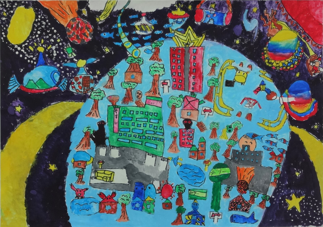 【本人コメント】 未来の長崎はもっと海のまち。多種多様な海の生き物と長崎の人が仲良くくらす。海のゴミをとる乗りもの。たくさんの人が海の中を移動して嵐や台風でも五島やいき、対馬へ行くことができる。 |