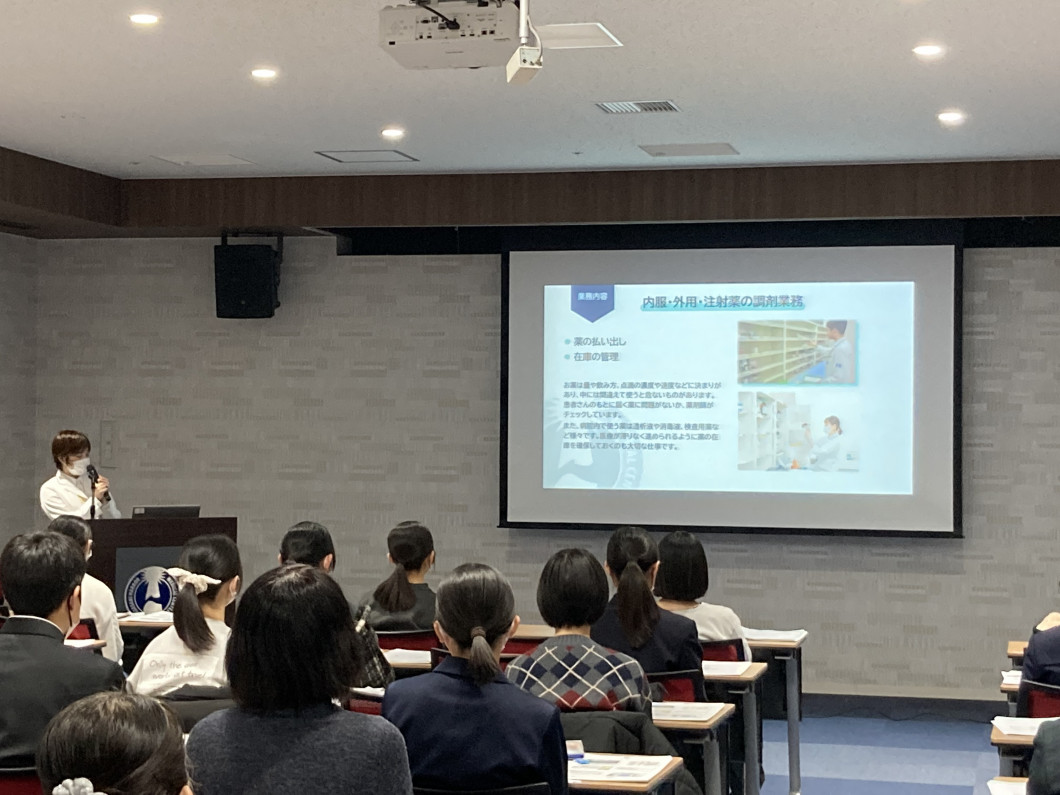 セミナーの内容としては、薬学教育の説明、病院・薬局・行政等の薬剤師の仕事の紹介、さらには、薬剤業務実習・病院薬剤部等見学を実施しました。