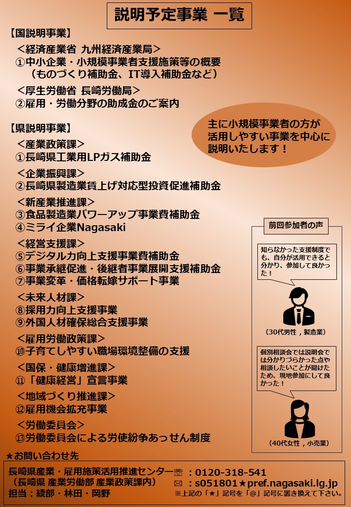詳細は、令和7年度長崎県産業支援制度説明会チラシ[PDFファイル/601KB]をご覧ください。