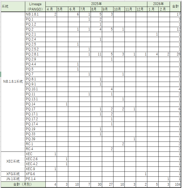 - 全国の検出状況と同様に、NB.1.8.1系統とその亜系統が検出されています。