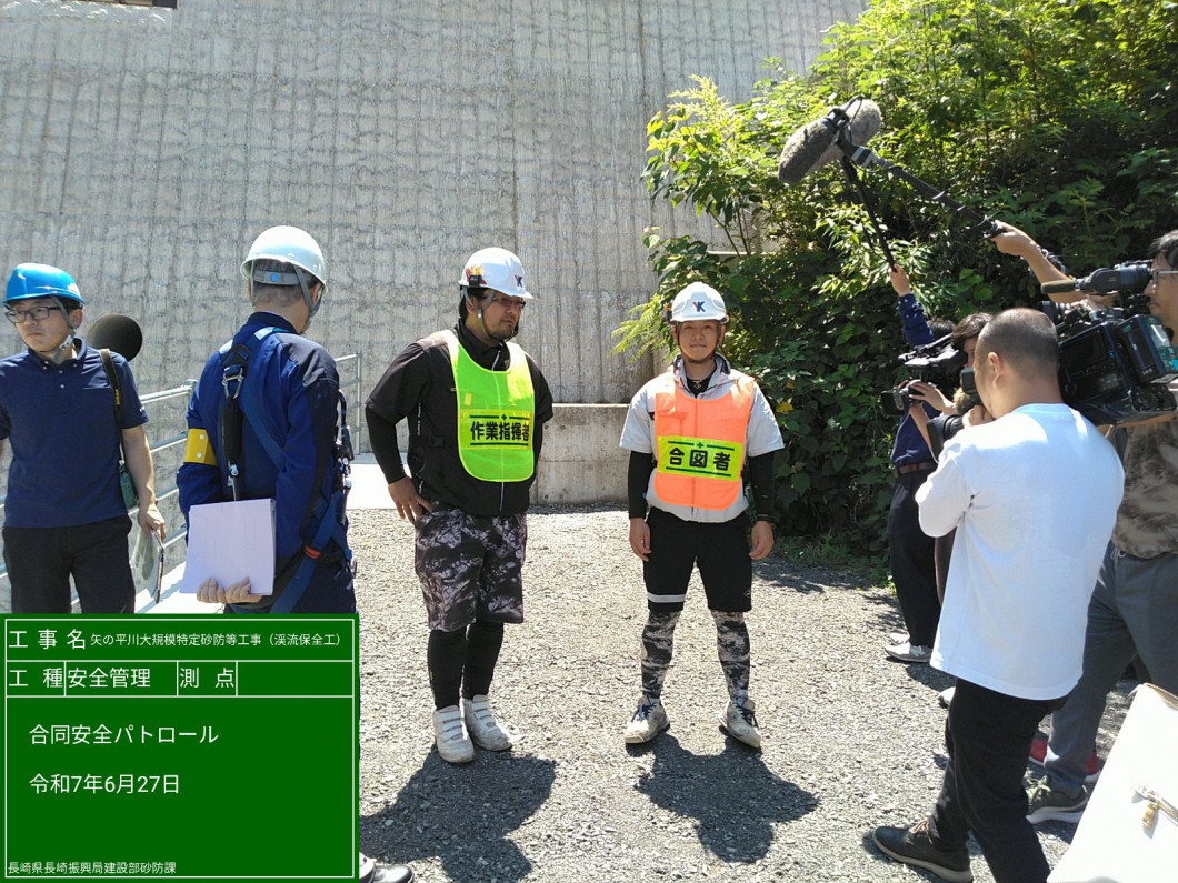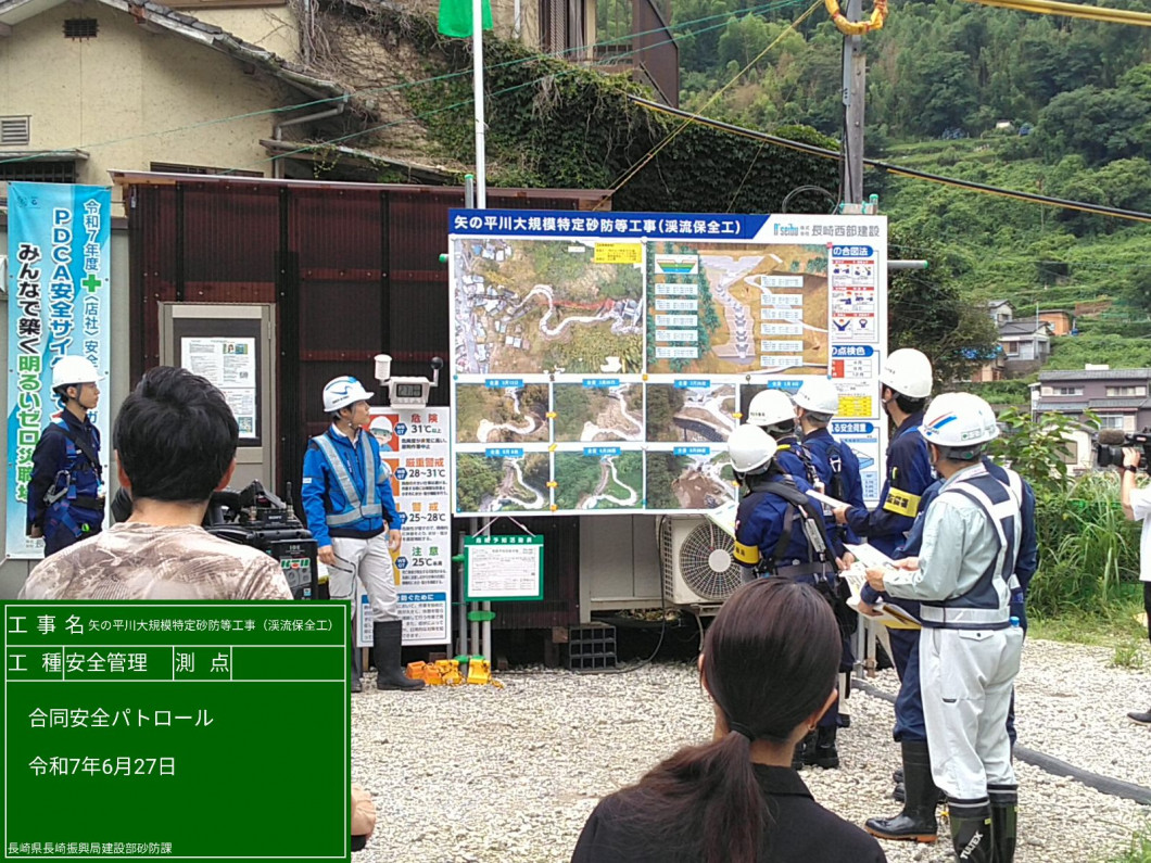 矢の平川大規模特定砂防等工事の現場(長崎市矢の平1丁目)において、長崎労働局および長崎振興局合同で現場安全パトロールを実施しました。