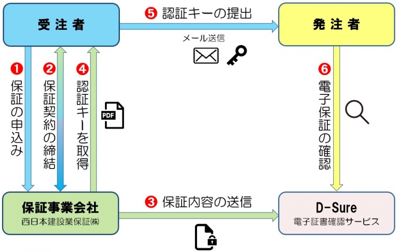 電子保証の申し込み方法等については、保証事業会社(西日本建設業保証株式会社等)にお問い合わせください。