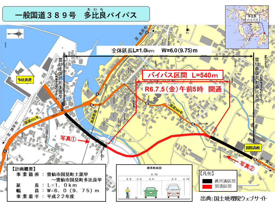 平成22年度から整備を進めておりました、一般国道389号の多比良バイパスが、令和6年7月5日(金曜日)に開通いたしました。