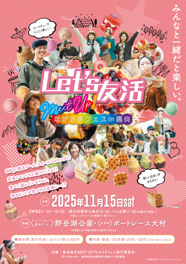 『MEET UP!ながさき in 県央~Let’s 友活~』に参加申込をされる皆様へ(旅行条件書) 『MEET UP! in 県央~Let’s 友活~』に参加申込をされる皆様へ 以下の旅行条件書について、ご確認ください。 旅行条件書[PDFファイル/468KB] ご確認後、この画面を閉じ、Formsの入力画面にお戻りください。 ※イベントの詳細は、以下のチラシをご覧ください。(クリックすると、拡大します。) カテゴリー 分類 くらし・環境 地域づくり 地域づくり めぐりあいながさき in 県央 新着情報 MEET UP!ながさきフェス in 県央~Let’s 友活~ 管理部 地域づくり推進課 新着情報 新着情報 このページを見ている人はこんなページも見ています