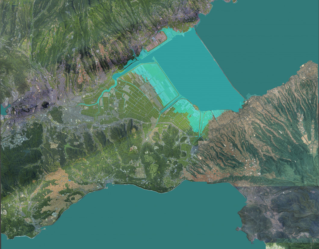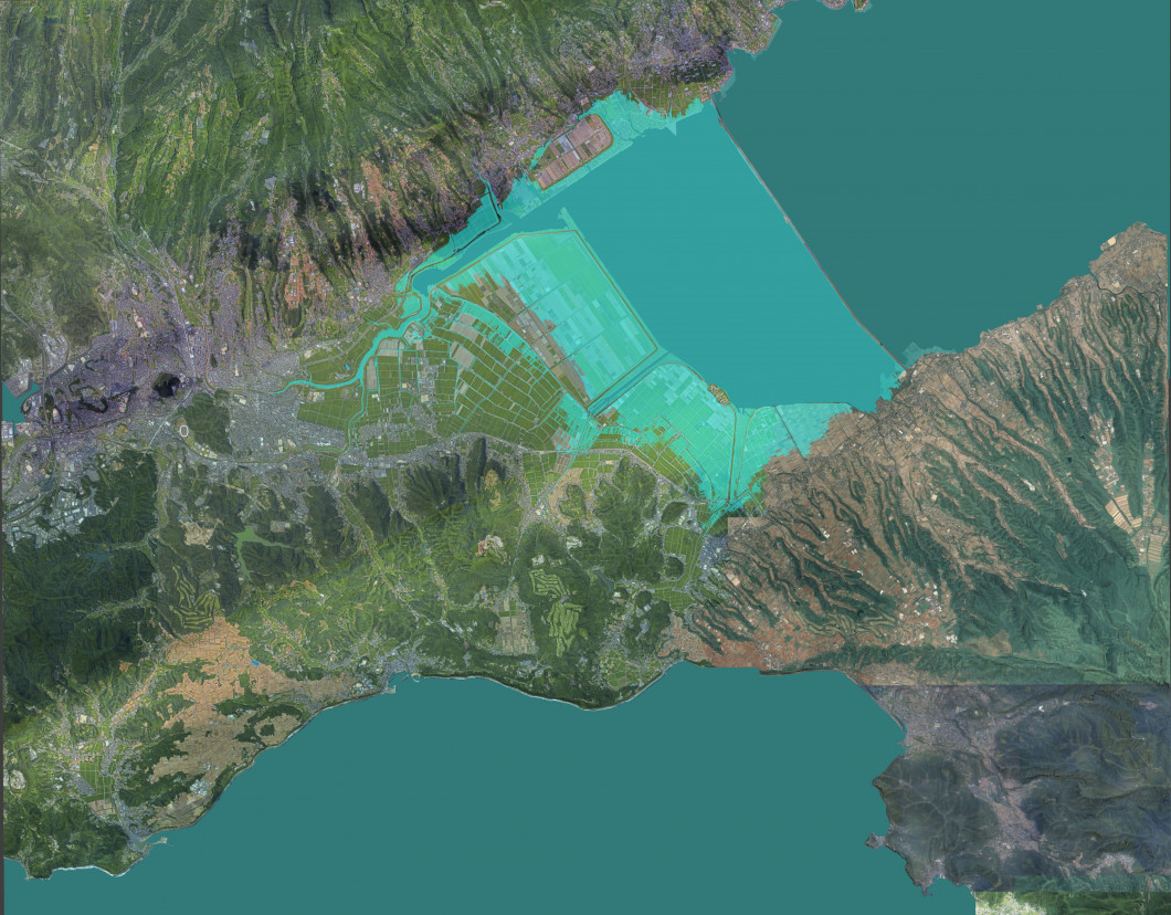 諫早湾周辺地域には、海水面よりも標高が低い低平地が広がっている