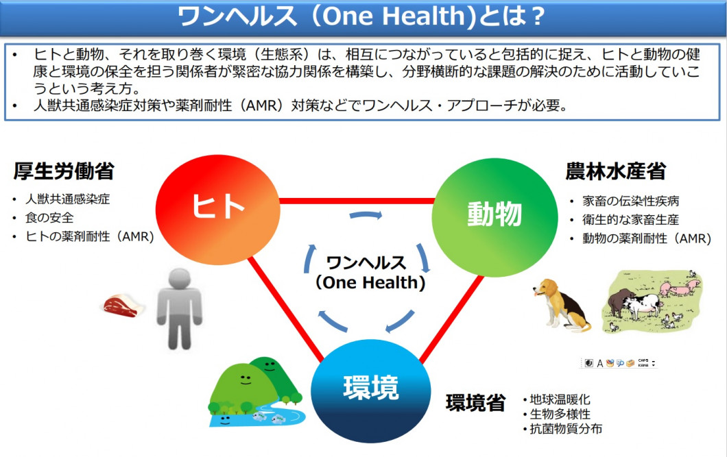 ワンヘルス(One Health)とは?                                                            厚生労働省のワンヘルスに関する取り組み[448KB]別ウィンドウで開く