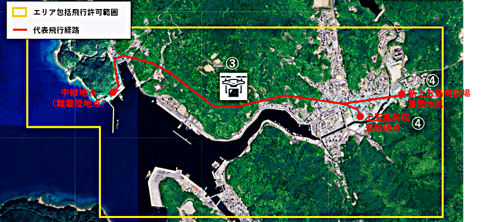 - 令和7年11月20日に、新上五島町において、国家戦略特区(新技術実装連携“絆”特区)制度による調査事業として、そらいいな株式会社等により、全国で初めてとなるドローンのエリア単位でのレベル4飛行による医薬品等の配送実証を実施。