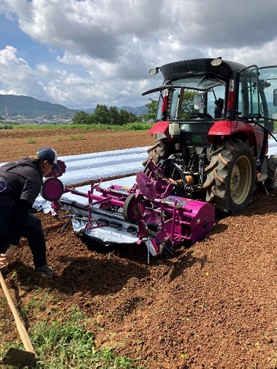雨が続いて先延ばしにしていたほ場が晴天でようやく耕耘ができる状態になり、急いで作付け準備に取り組みました。露地野菜担当の二人でそれぞれトラクターを操作し、1台目で耕耘し、2台目のトラクターで畝立てマルチングを実施しました。別の露地ほ場でも定植作業で忙しく、今日は単独でマルチング作業に取り組んでいたら、集中して作業することができ、先生や友人にすごくきれいな畝だとほめられました。明日もほ場準備に取り組みます。(野菜コース1年生) |
