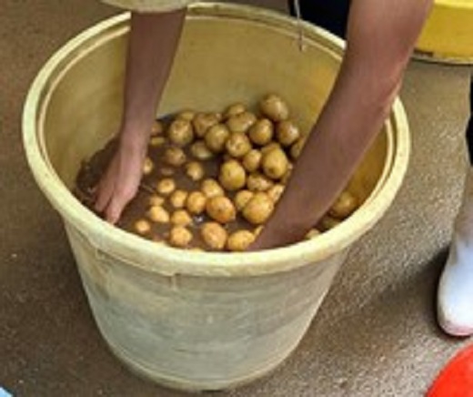 9月5日に秋作栽培(無マルチ)のばれいしょ7品種:「アイユタカ」、「アイマサリ」、「さんじゅう丸」、「デジマ」、「ながさき黄金」、「ニシユタカ」、「普賢丸」の種いも消毒を行いました。