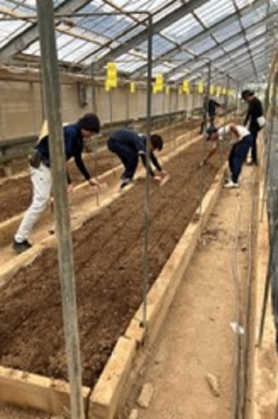 今年も、ハウス栽培での良さを有効活用し病害虫の被害を抑えるため、ガラス温室(隔離床)に葉もの類をたくさん栽培する予定です。まだ、葉もの類の発芽には、現在の気温や地温が高く、発芽がうまくいくか心配ですがほうれんそうや小松菜、水菜を播きました(9月4日)。これから、時期をずらしたり、品種を変えたりして、収穫作業が重ならないよう工夫して、楽しく販売できるようにがんばります。 (園芸学科野菜コース学生) |