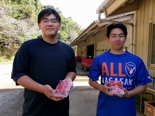 令和7年産のイチゴ、販売開始しました。夏場の高温の影響で花芽分化の遅れが心配されましたが、順調に花芽分化し、定植後の高温傾向の中、生育も進み、11月初旬から販売開始できました。小玉傾向ではありますが、甘酸っぱいイチゴらしい味のイチゴができました。 本年産のイチゴをどうぞ、よろしくお願いします!!(野菜コース 学生)