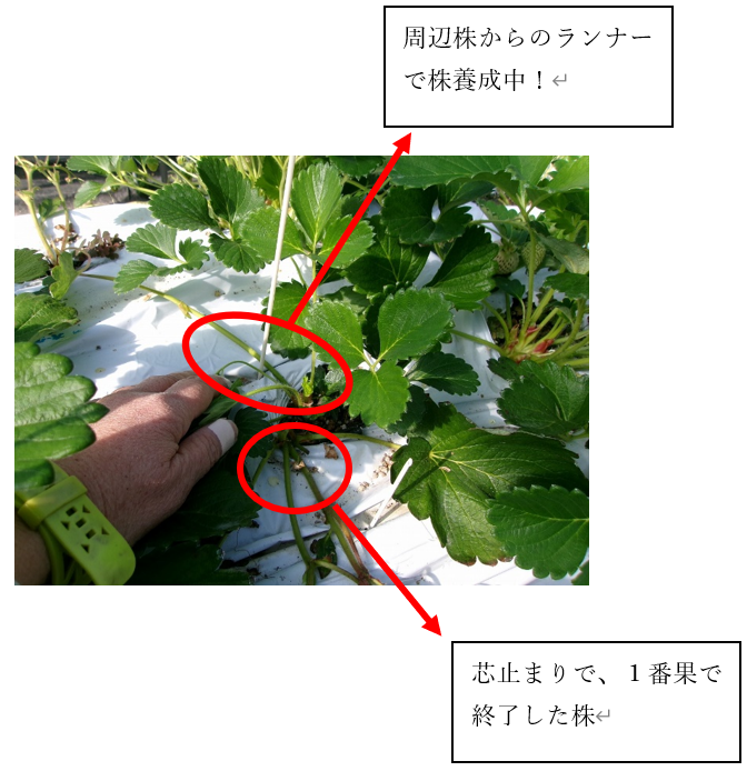 イチゴの芯止まり果(芽無し果)対策(2月3日)
