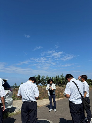 基盤整備地では実際の圃場を目の当たりにして効率的に作業できる圃場が実感できました。また、「長崎びわ次世代担い手会議」で試験研究の成果や実際に栽培している生産者の話が聞けて参考になりました。参加したJA職員や生産者に農大の卒業生がいて1年生は在校時の話も聞いていました。(園芸学科果樹コース職員)