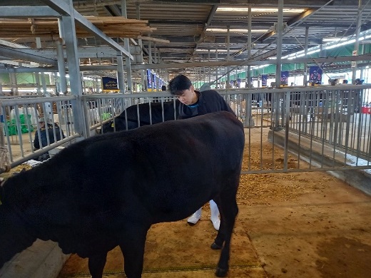 農大からは2年生の香田君が、プロジェクト課題の一環として雌牛1頭(「ぽんず」号)を第1区(若雌の1)に出品しました。また、畜産学科1、2年生全員が会場での応援となりました。香田君にとっては栄養管理や調教など、限られた時間内での出品でしたが、最後まで牛を落ちつかせ立派に立たせることができ、2等賞2席を受賞することができました!この取組をプロジェクト発表に十分活かしてください!!(畜産学科職員)