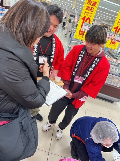 名の学生らは館内アナウンスや試食及びアンケート調査を行うなど積極的に活動しました。