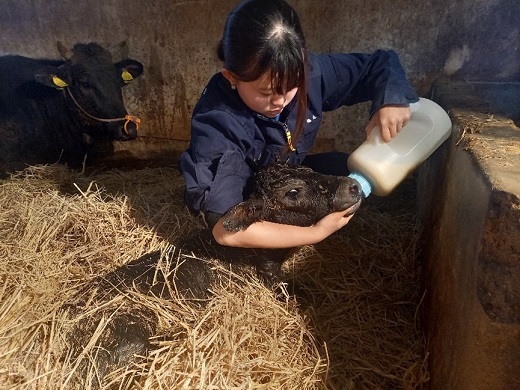 この雌仔牛は、農大が令和9年8月に開催される北海道全共へ出場するための大事な候補牛です。今後の成長を大いに期待しています!元気に育ってね!!(畜産学科職員)