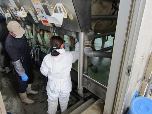 3月13日(金)、3月16日(月)は畜産研究部門における酪農実習で、搾乳の体験を2班に分かれて行いました。