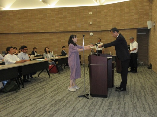 続いて農業大学校 酒井校長からそれぞれの受講者に修了証書が授与されました。その後、受講生を代表して、今年度の副委員長を務めた相川大地さん(西海市)より「これから、さらに経営を発展させ、地域農業、日本農業を担う、たくましい経営者となるため、今後も研鑽し続けることを誓います」と、力強い決意の言葉がありました。