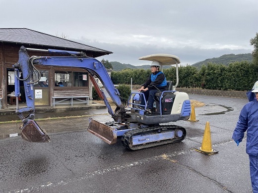 12月23~25日の3日間、建設業災害防止協会長崎県支部から講師を迎え、小型車両系建設機械に係る特別教育(バックホー研修)を農業大学校で開催し、