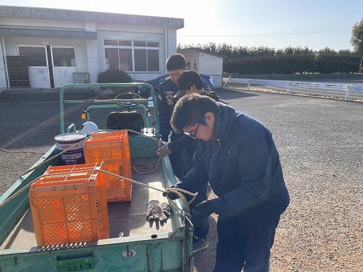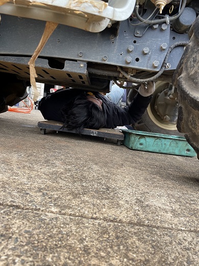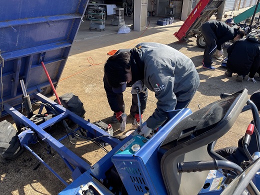 1年生は毎年4月入学してすぐに、刈払機やキャリーの基本点検について研修を受けますが、今回の演習では、さらに詳しく、その他農業機械の点検の基本やポイント、オイル交換の方法など学びました。