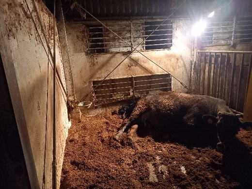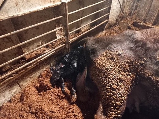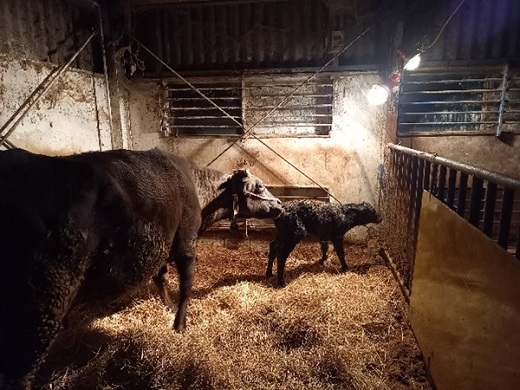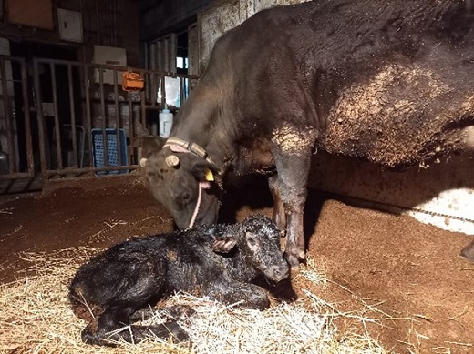 3月30日分娩予定の「ゆい」号が、この日の深夜に「おうき」号を産みました。雌子牛ですが、生時体重は44kgで大きかったです。