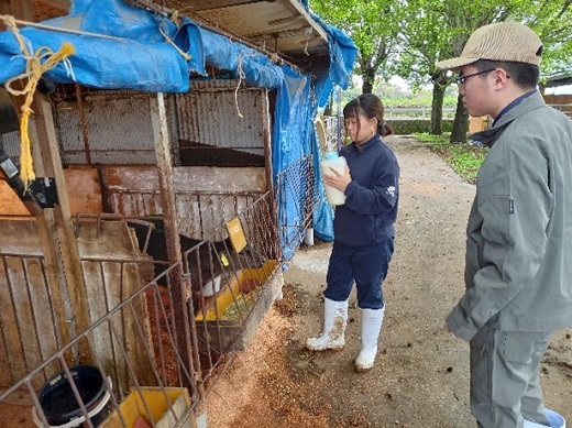 2年生は上級生として、1年生とたくさんコミュニケーションをとり、飼養管理などしっかり教えて下さい。(畜産学科職員)