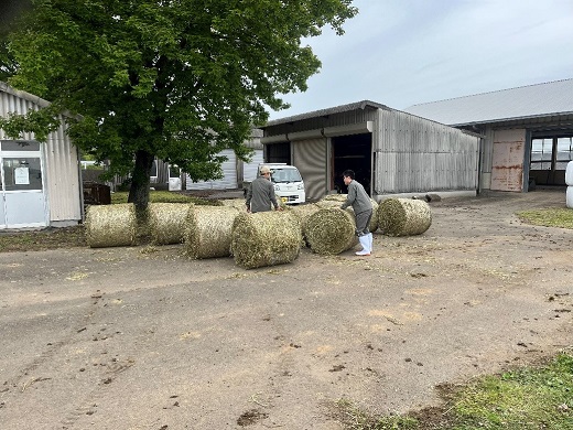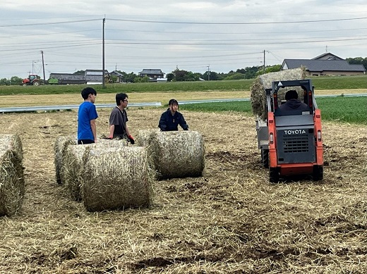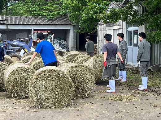 今春は晴天が続かず、牧草(イタリアンライグラス)の収穫作業や梱包及びラッピングなどの調製作業のタイミングが非常に難しいなか、 1、2年生が協力しながら限られた時間内で50個の梱包とラッピングを行いました。(畜産学科職員)