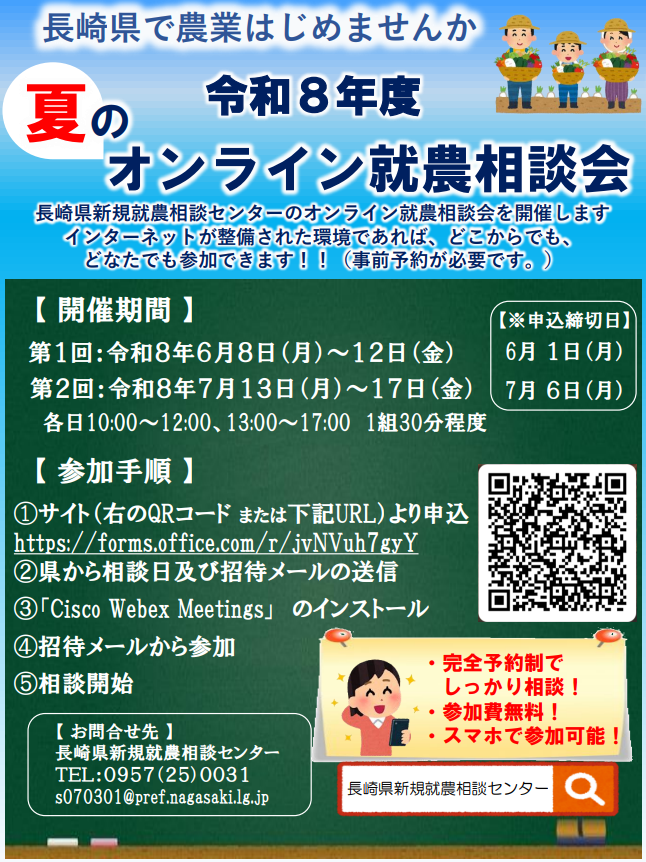 長崎県新規就農相談センターのオンライン就農相談会を開催します。