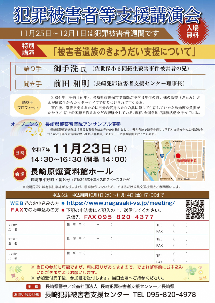 聞き手 前田 和明(長崎犯罪被害者支援センター理事長) - 問合先