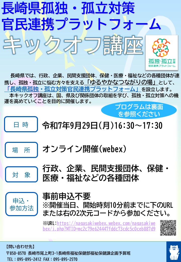 長崎県孤独・孤立対策官民連携プラットフォーム「キックオフ講座」の開催について |