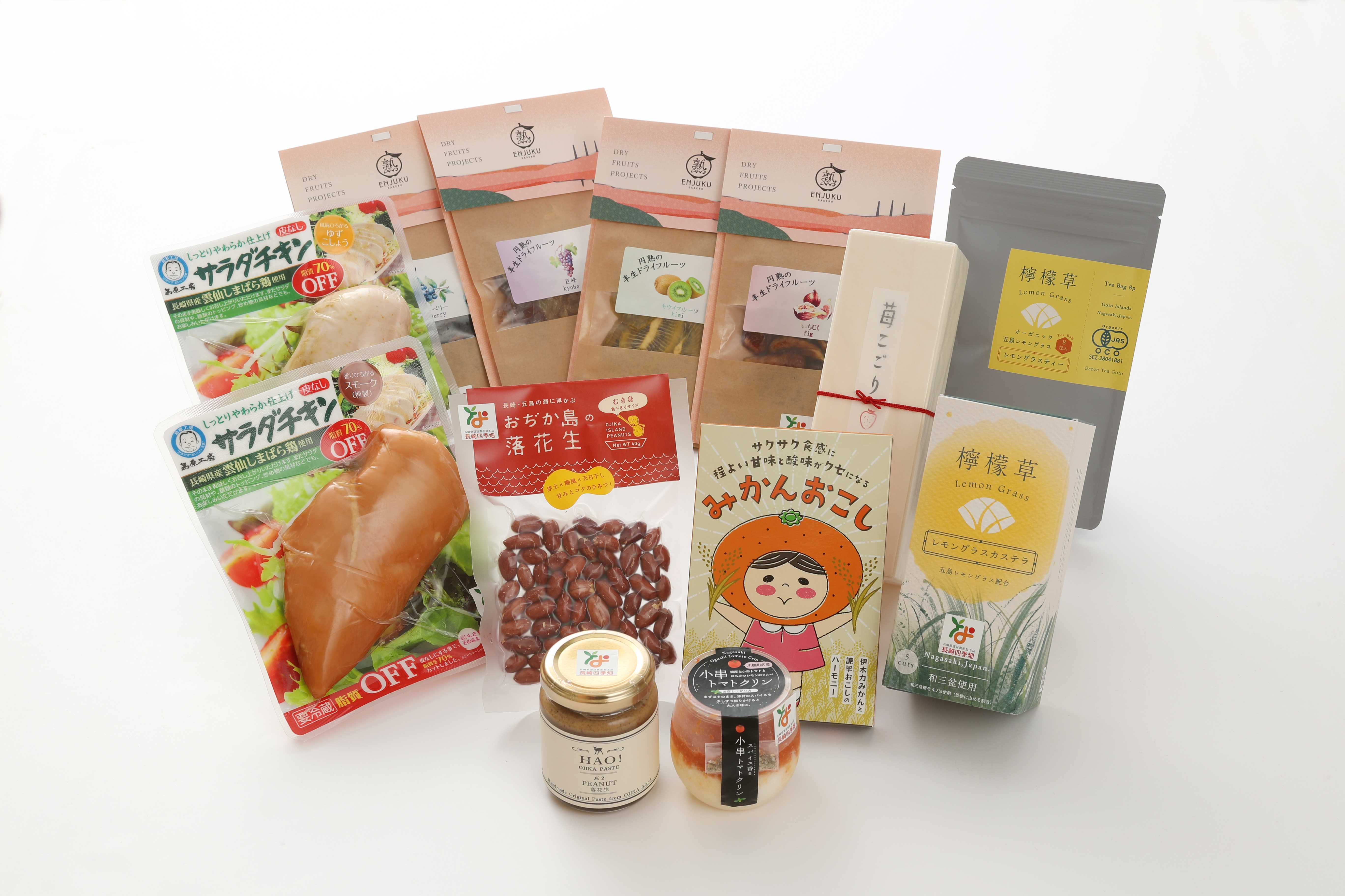 県産のいちごを使った和菓子や小串トマトのデザート、五島市の有機レモングラスを使ったカステラやお茶、県産果実のドライフルーツ、小値賀町のピーナッツペースト、雲仙しまばら鶏を使ったサラダチキンなど、13商品が認証されました。